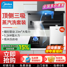 美的变频蒸汽洗抽油烟机燃气灶套餐顶侧双吸烟灶消热厨房三件套装
