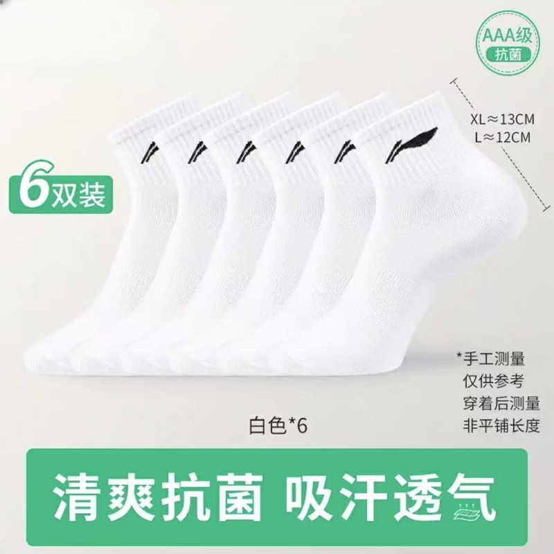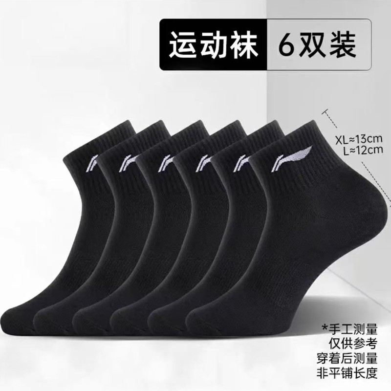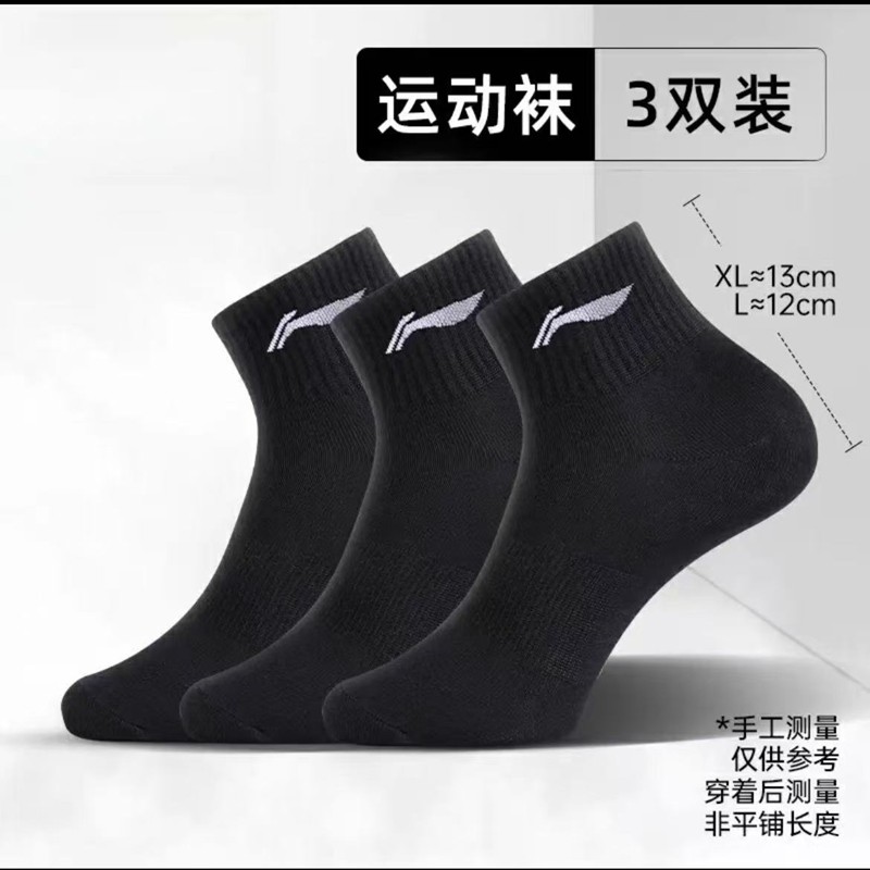 李宁袜子男士跑步运动短袜青少年女夏季薄款纯棉抗菌透气防臭中筒