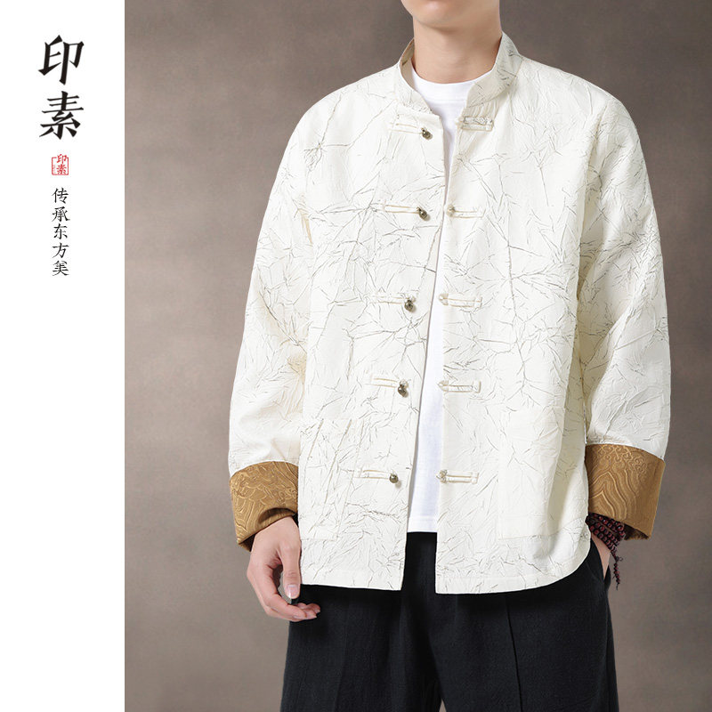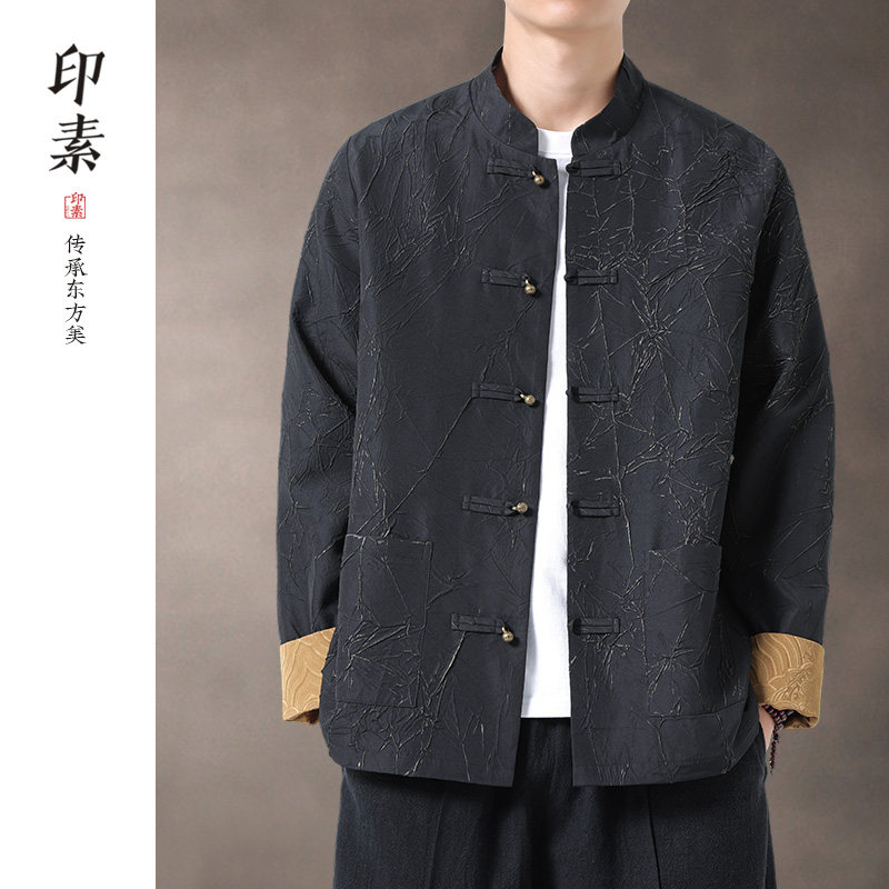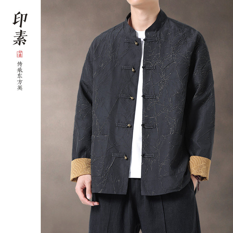 印素秋装新中式男装秋季复古铜扣唐装汉服立领盘扣薄款外套禅修服