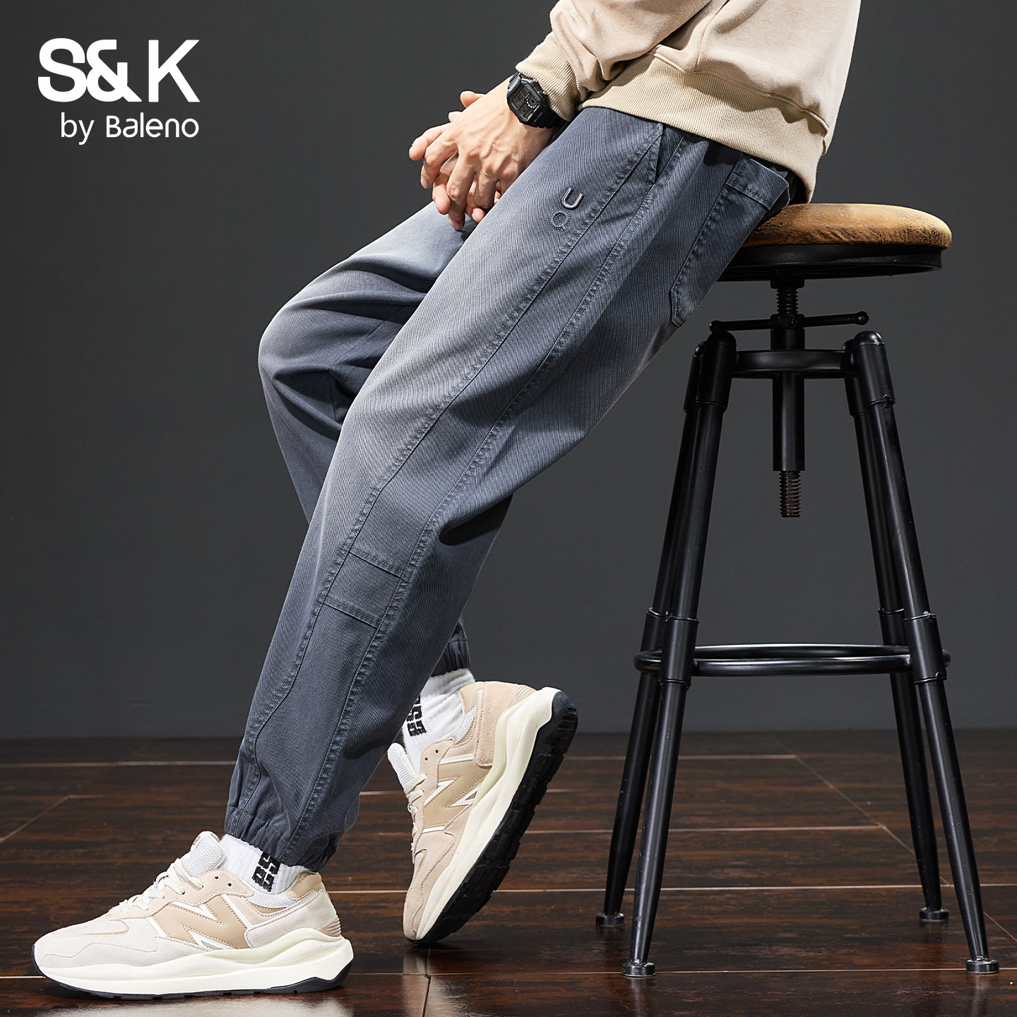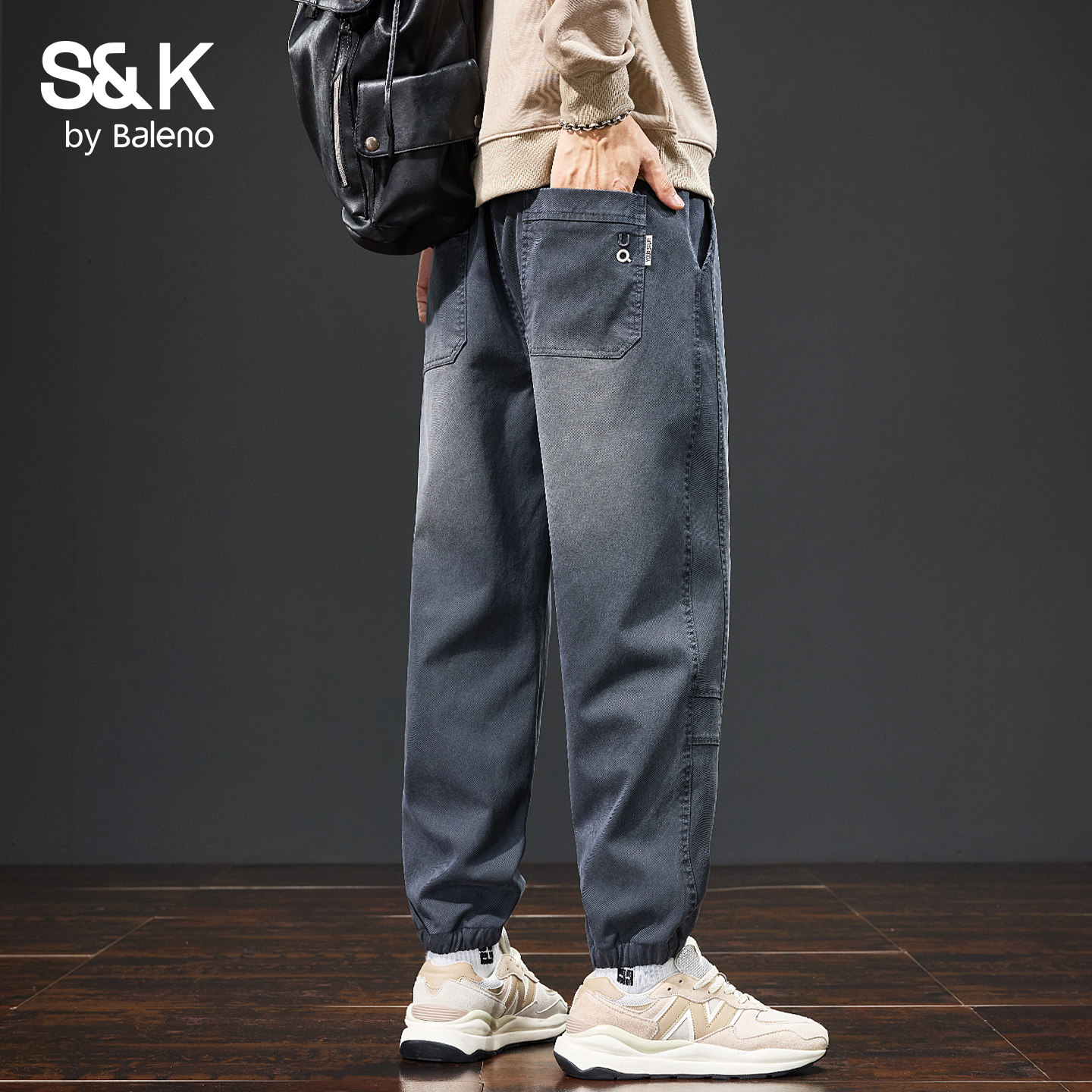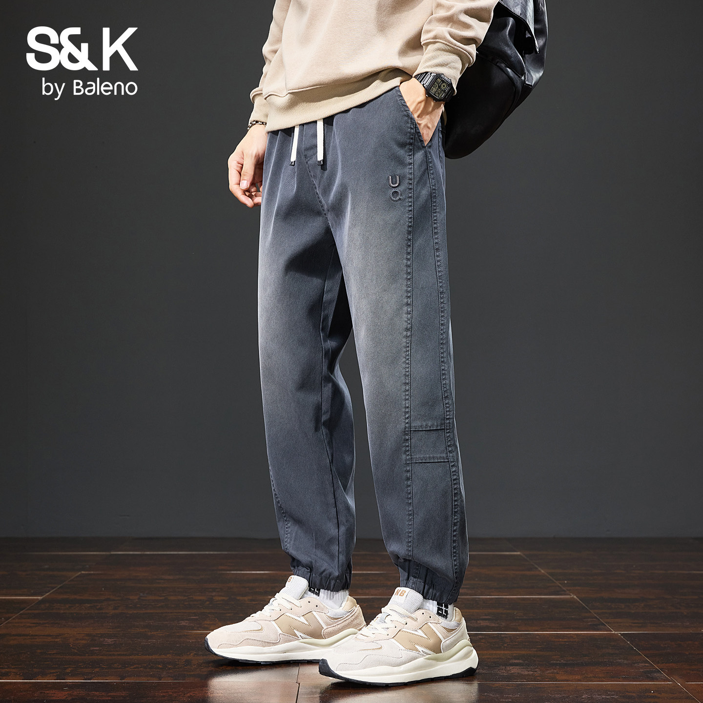 班尼路SK潮牌仿牛仔休闲裤男士秋季百搭时尚抽绳束脚运动九分裤YS