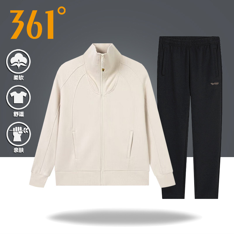 361度运动服套装女春秋新款立领开衫卫衣休闲直筒卫裤针织两件套