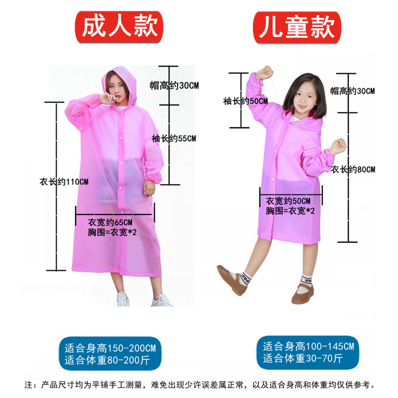 成人儿童加厚非一次性雨衣 透明徒步长款EVA男女户外旅游便捷雨披