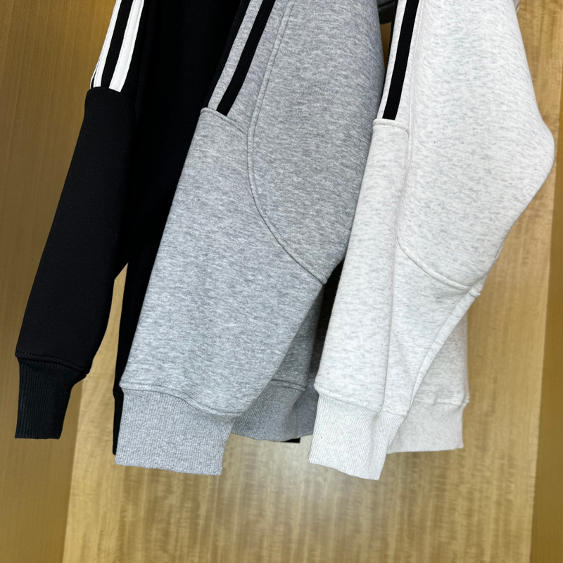 460G重磅连帽卫衣男秋冬款加绒加厚三杠潮牌宽松套头帽衫上衣外套