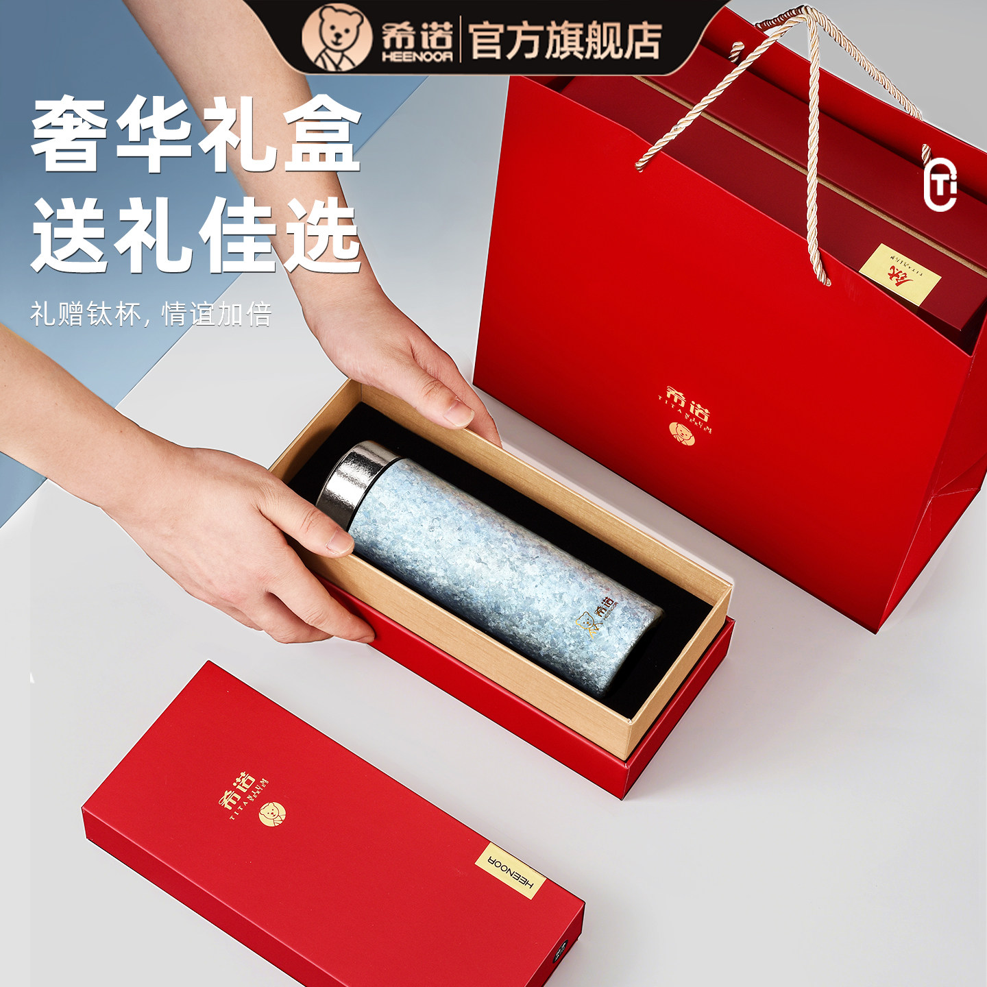 希诺保温杯纯钛杯子男女士高档双层钛水杯焖泡茶杯高颜值杯子礼物