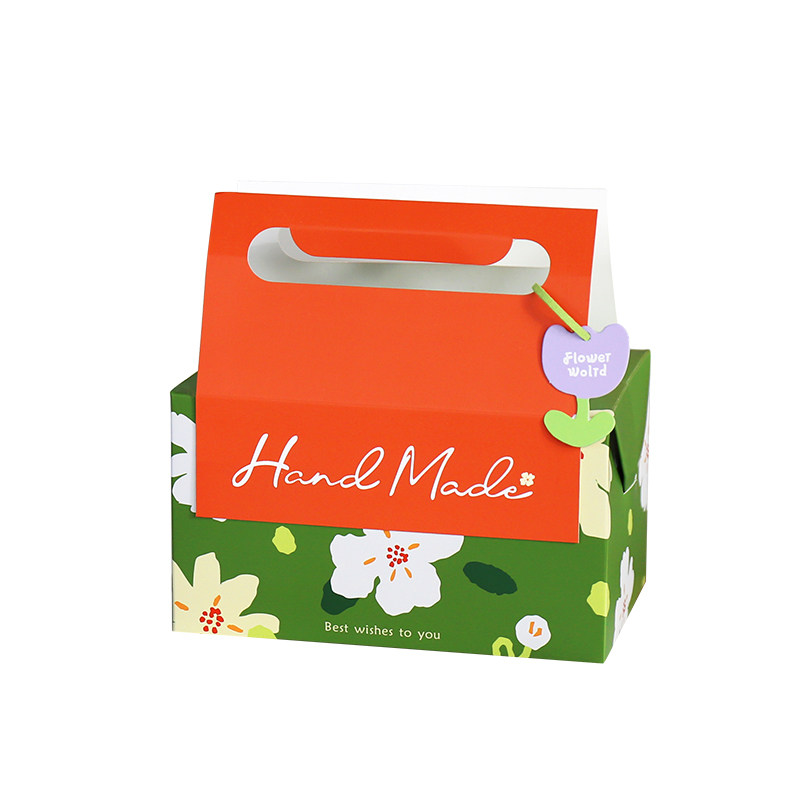 端午节烘焙包装盒绿豆糕粽子盒曲奇饼干包装绿色油画花朵手提空盒
