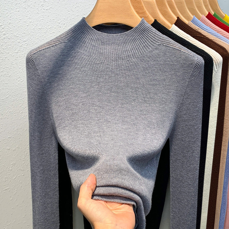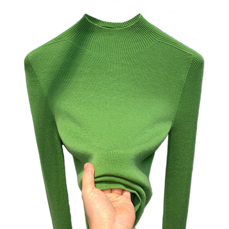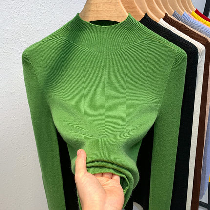 桑蚕丝羊绒毛衣半高领绿色长袖针织衫打底内搭2025秋冬新款女灰色