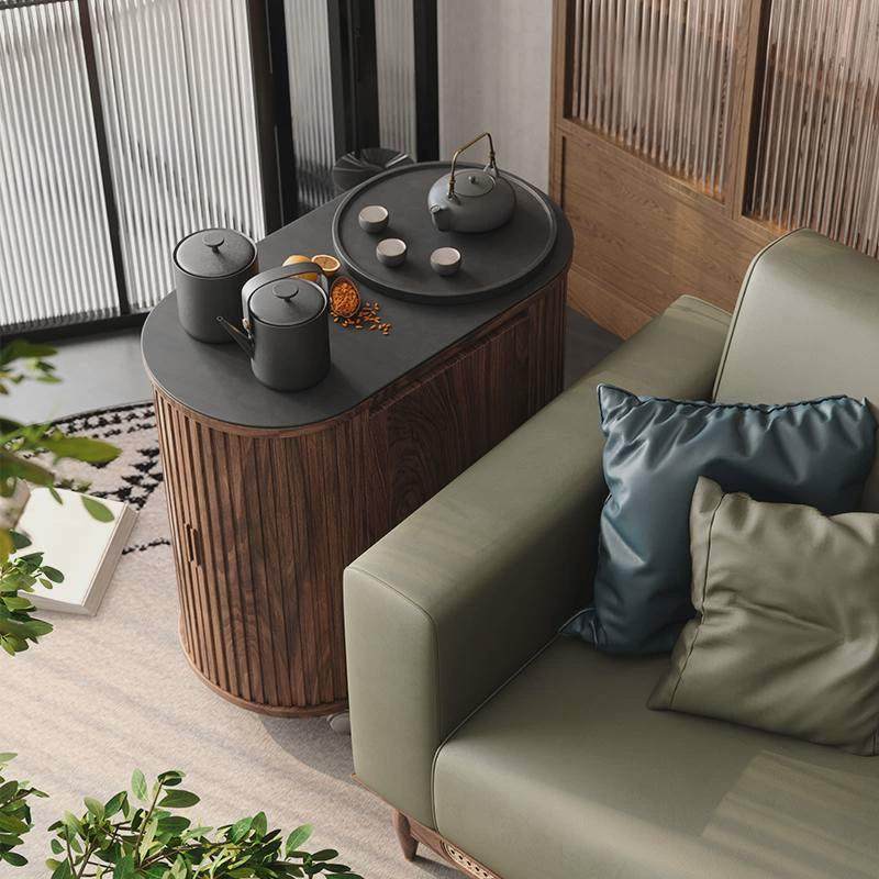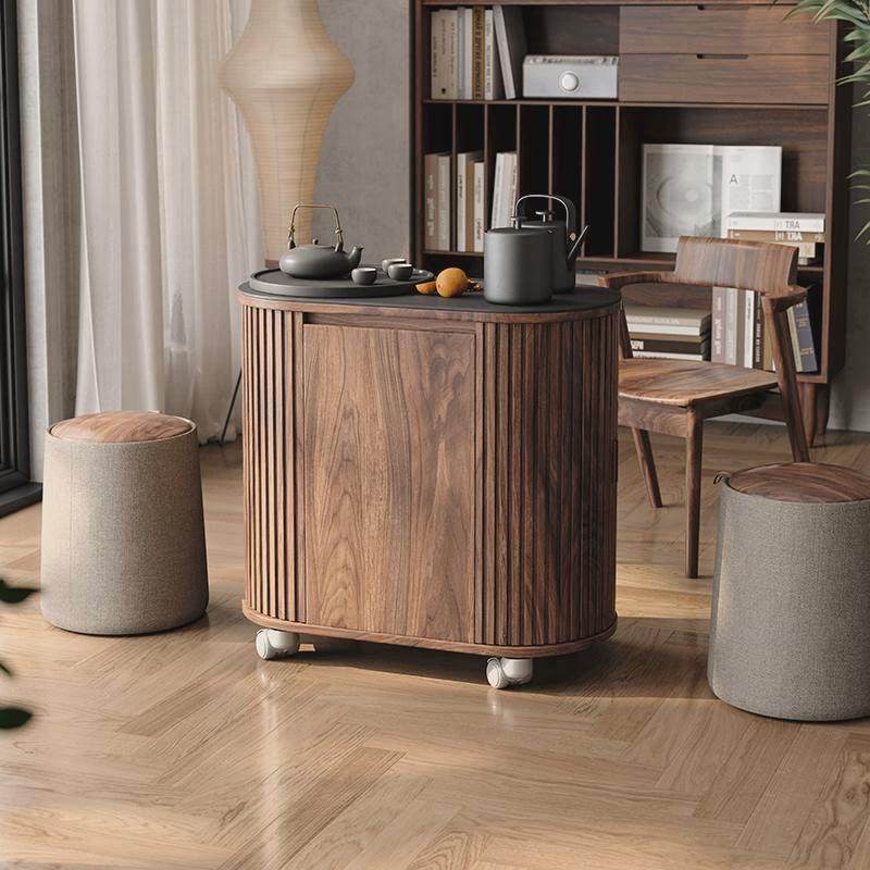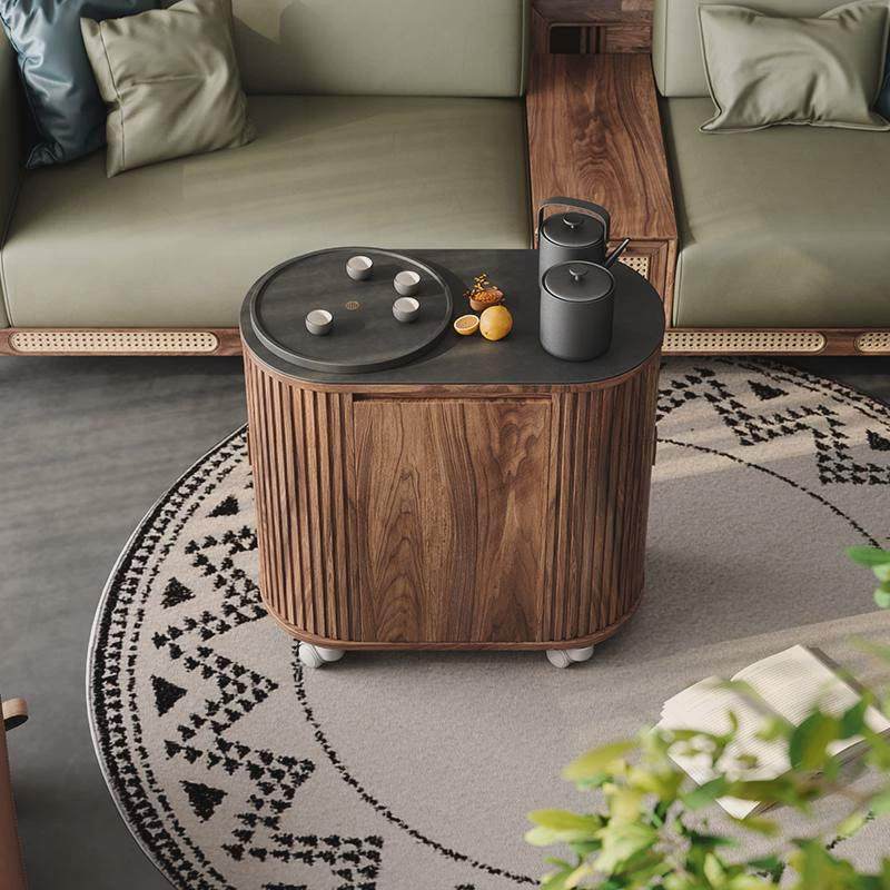木胭脂茶宴茶水柜可移动茶车茶台小边几可泡茶一体火烧石茶桌