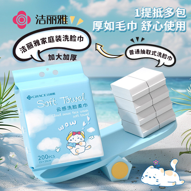 洁丽雅洗脸巾一次性洁面巾加厚悬挂式壁挂抽取式洗面擦脸巾家庭装
