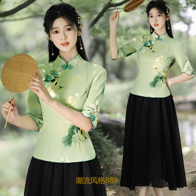 改良旗袍两件套连衣裙少女夏装2025新款初中高中学生民国风古装裙