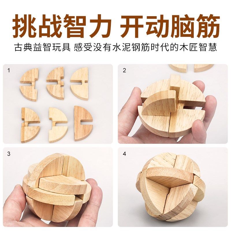 鲁班锁孔明锁全儿童十级难度智商烧脑九连环解密益智男孩