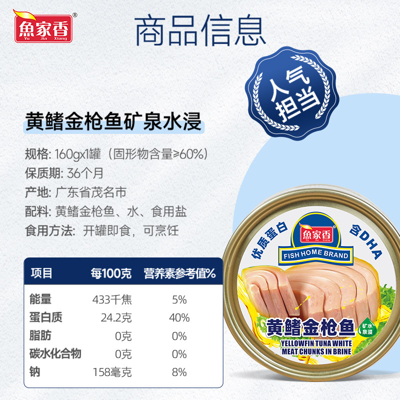 鱼家香黄鳍金枪鱼罐头矿泉水浸