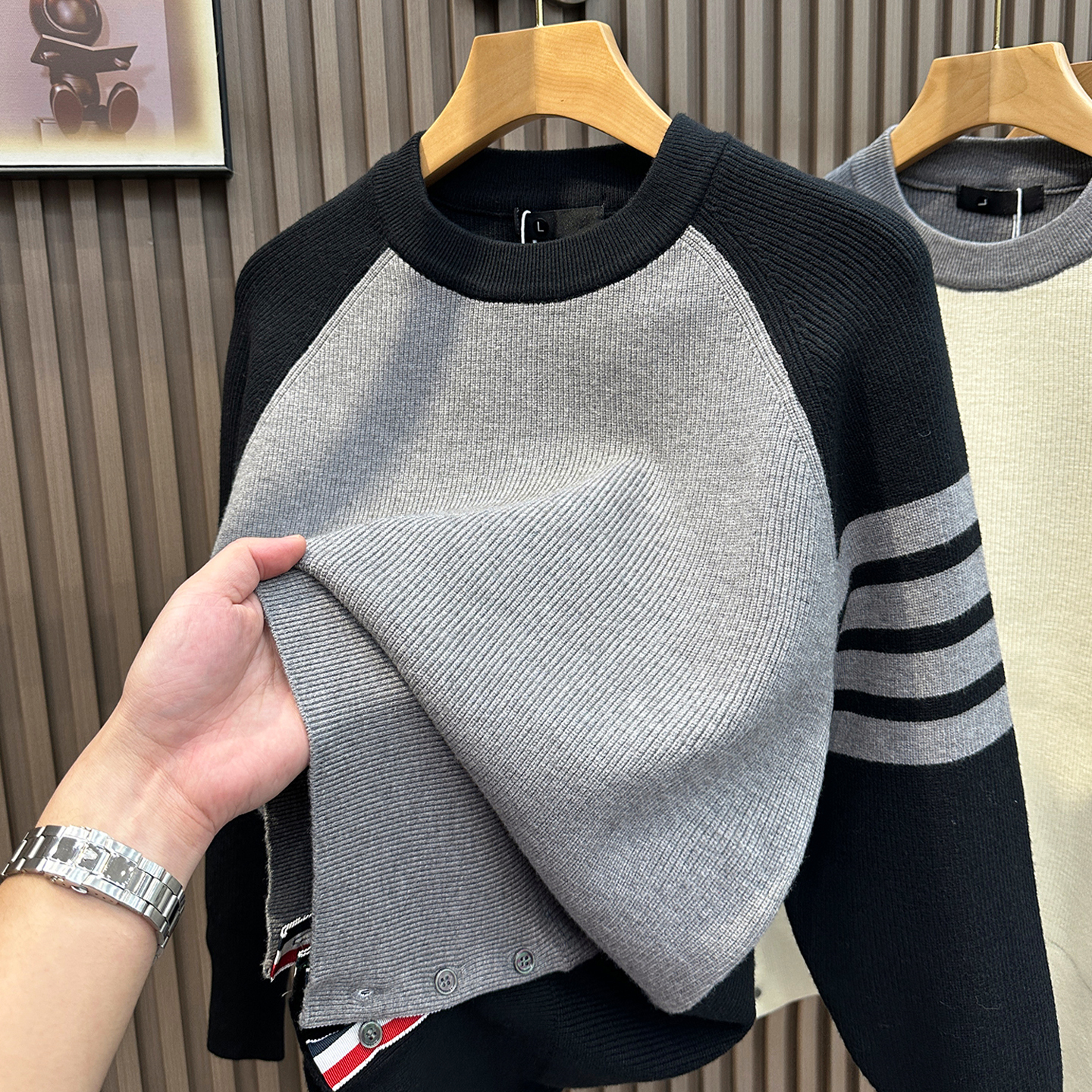 2025年秋季新款男套头长袖毛衣男时尚潮流休闲百搭条纹内搭针织衫