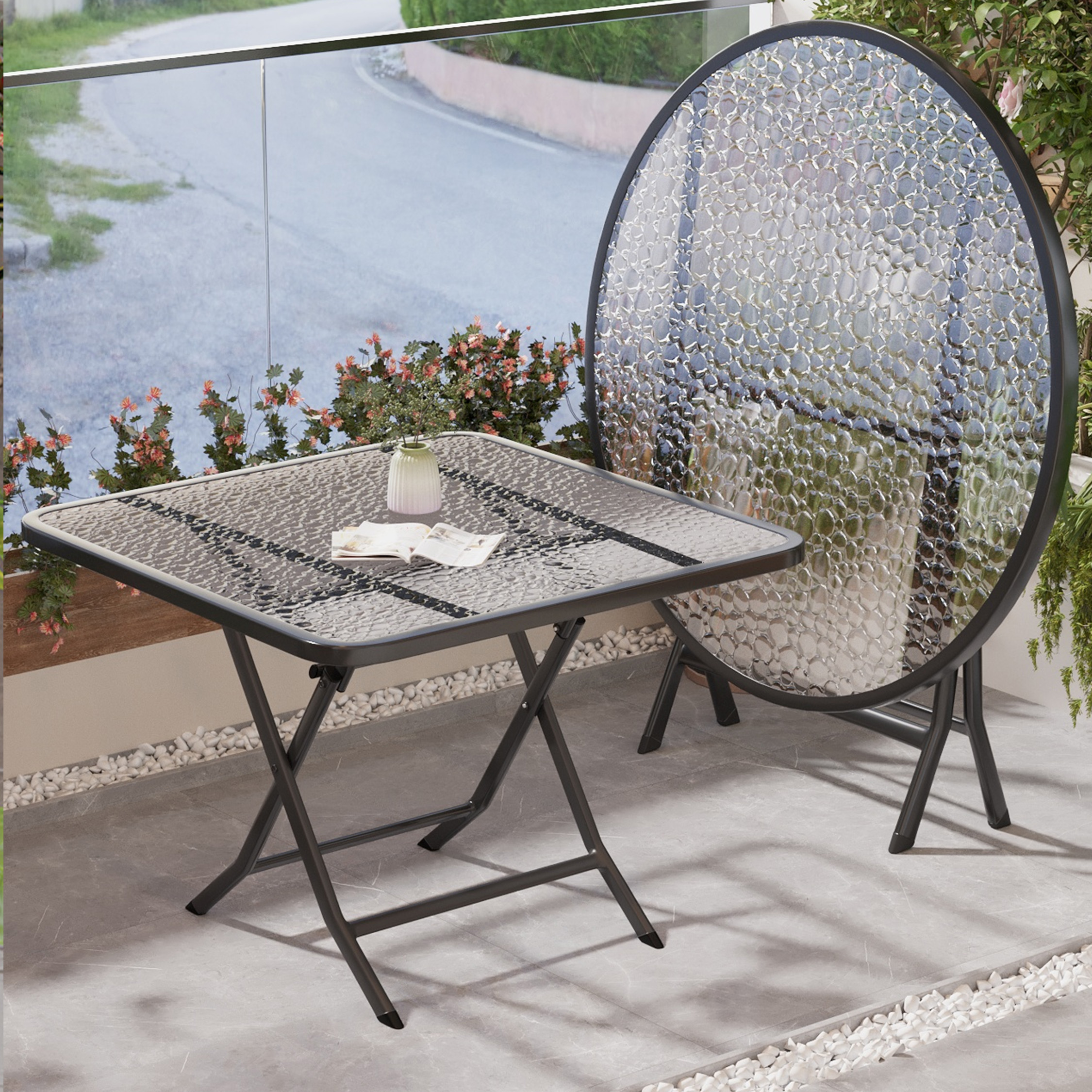 折叠圆桌阳台餐厅茶桌家用钢化玻璃方桌吃饭餐桌摆摊桌户外小桌子