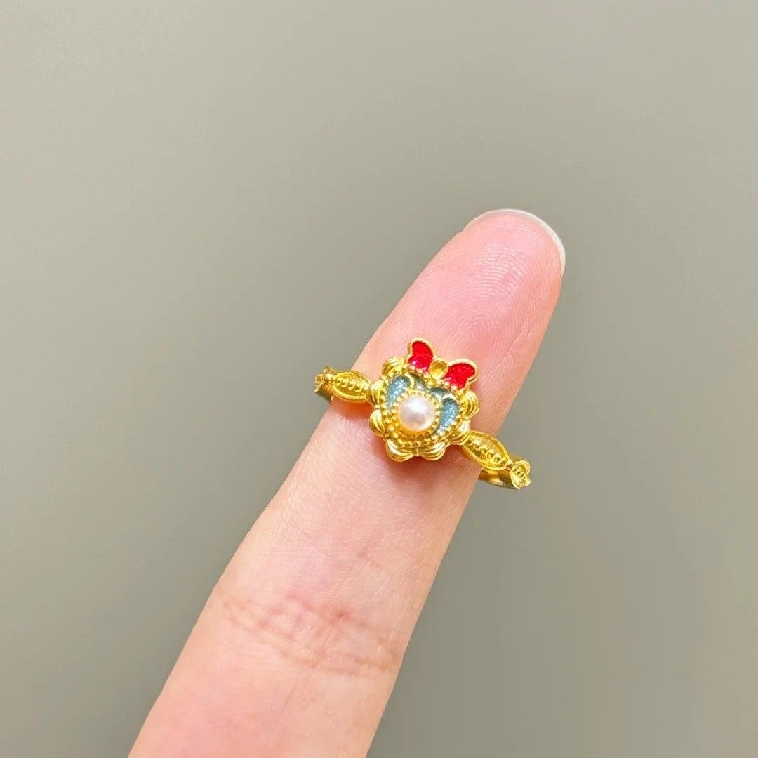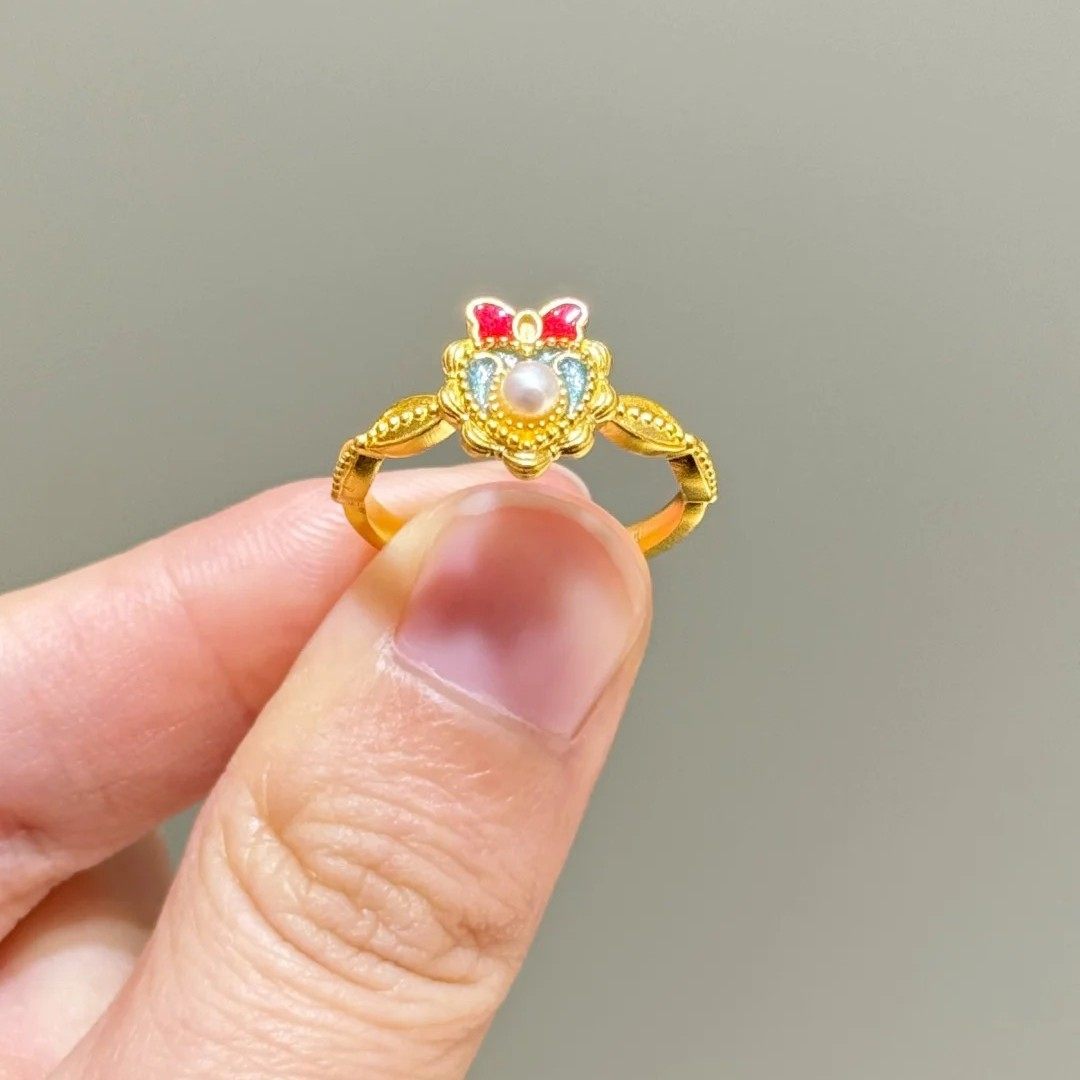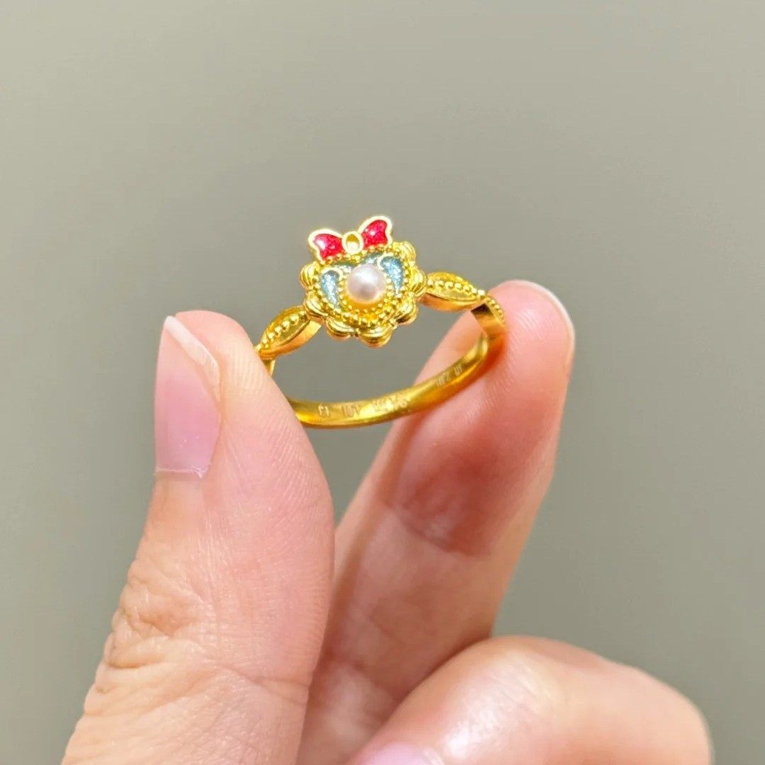 迪士尼白雪公主爱心蝴蝶结戒指女小众设计轻奢千金感可调节指环