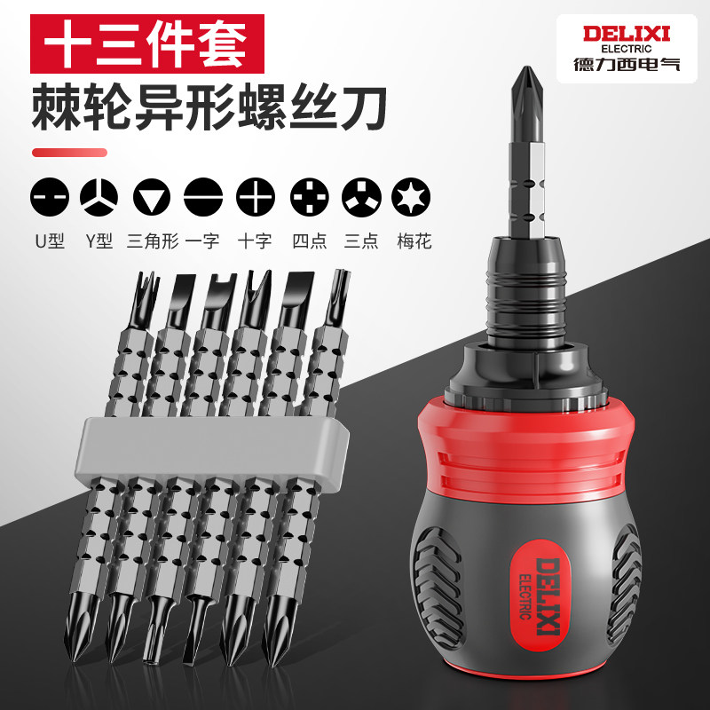 德力西棘轮螺丝刀套装梅花起子多功能家用异形小型十字一字改锥