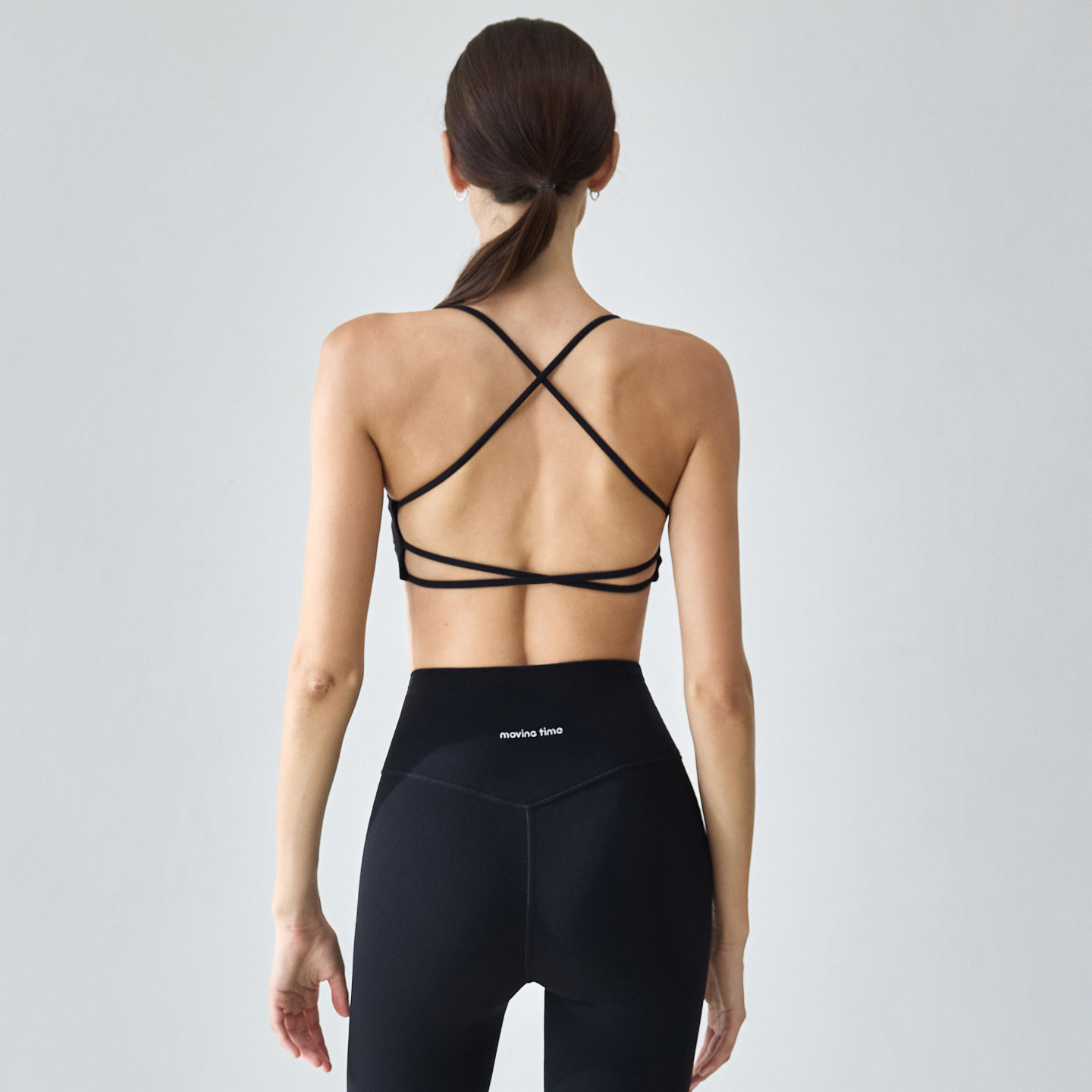movingtime细肩带美背运动内衣女带胸垫健身文胸普拉提瑜伽背心