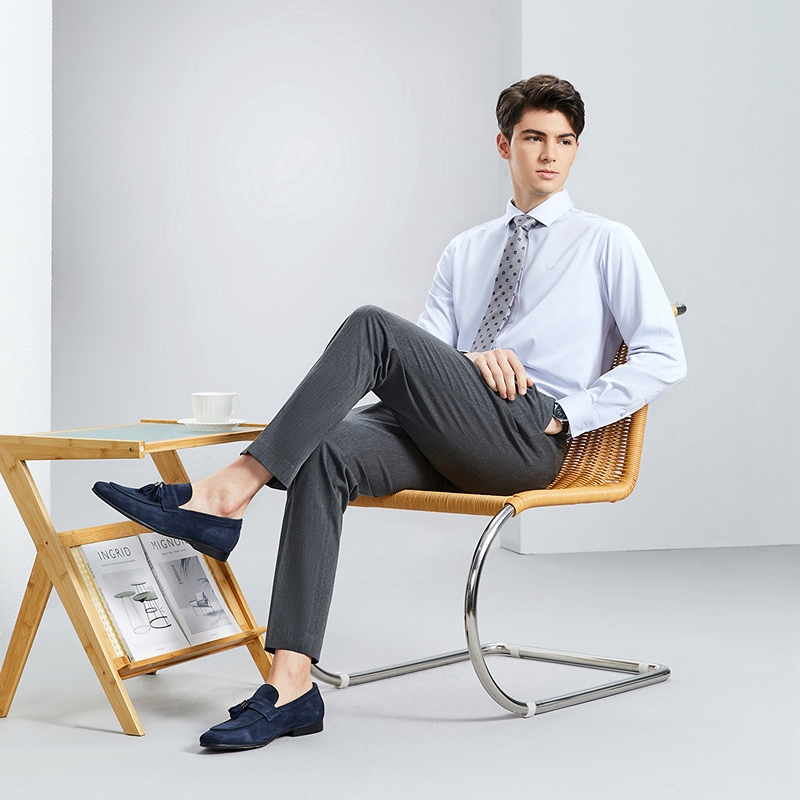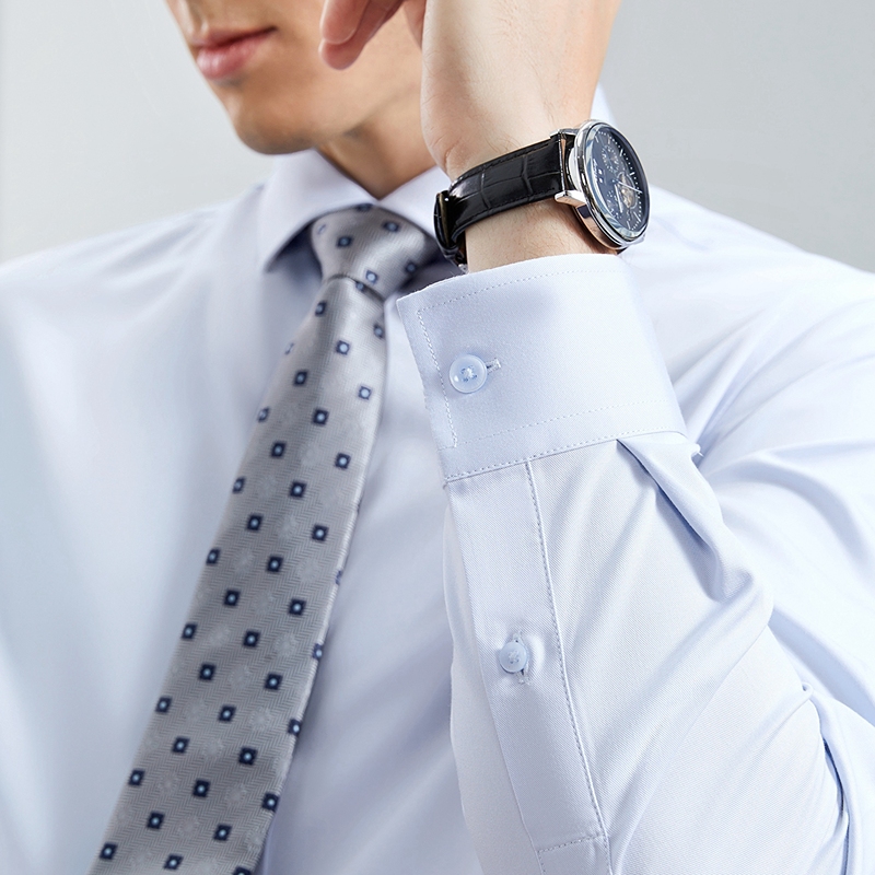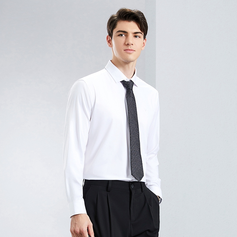 【含竹纤维】柒牌长袖衬衫男士秋季新款商务百搭易去污翻领衬衣