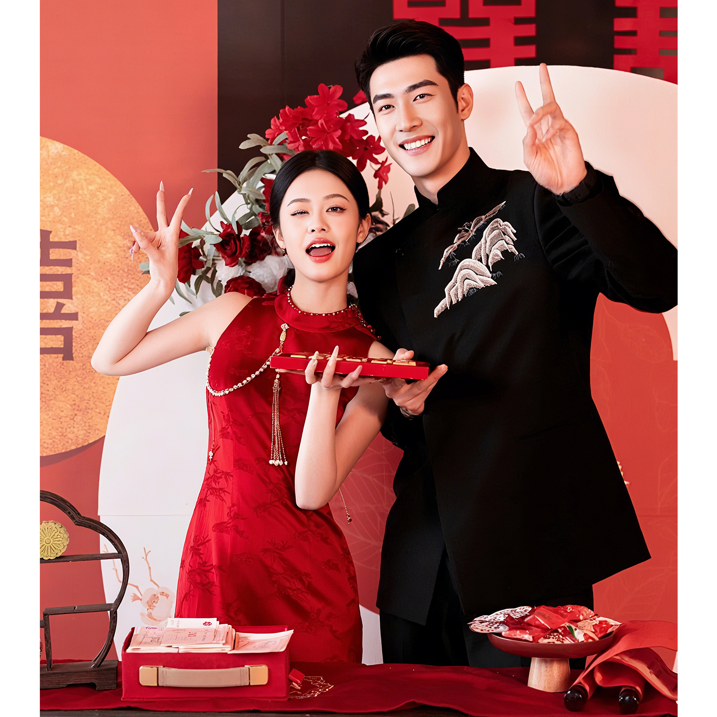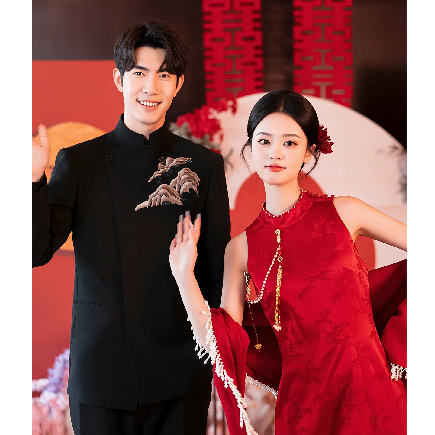 欢喜橙/原创设计正版中式高档男士敬酒服新款中山装领证结婚西服