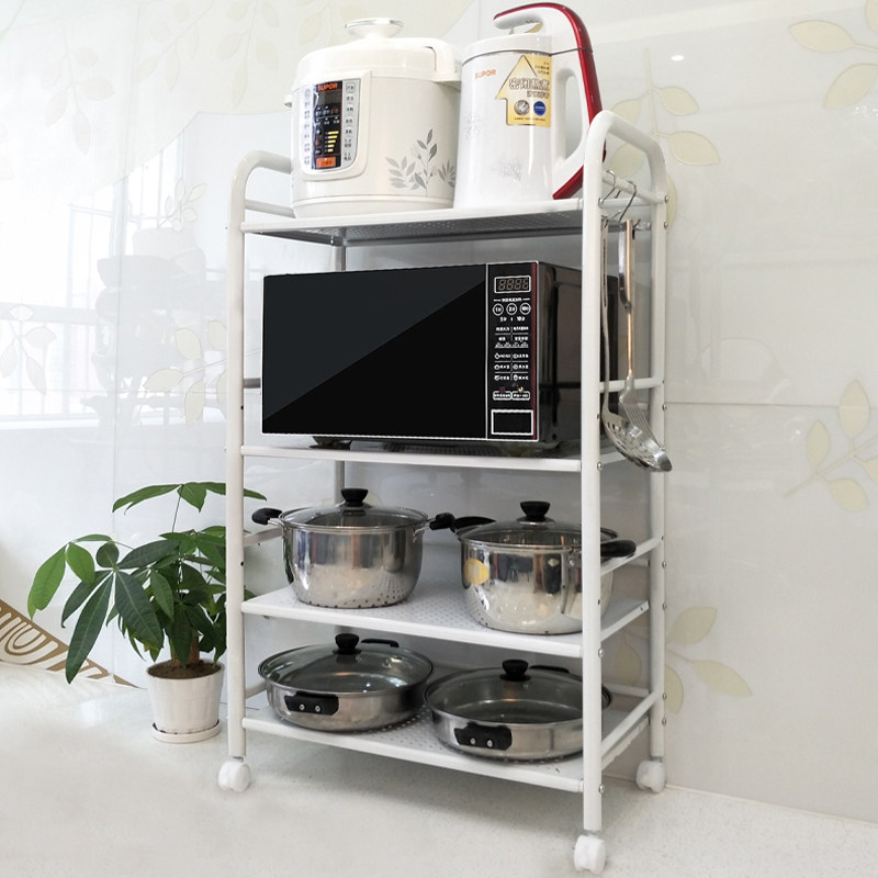 厨房夹缝置物架白色落地多层多功能放锅具收纳架微波炉架子烤箱架