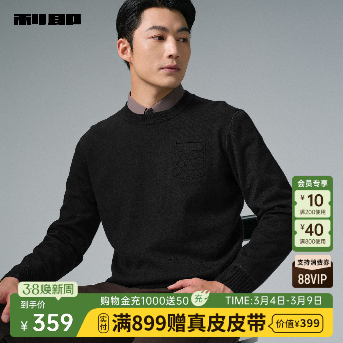 【可机洗羊绒/加绒加厚】利郎毛衣男士冬季男装保暖针织衫