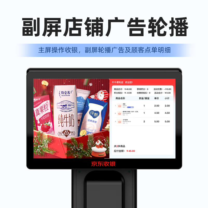 京东Y3收银机超市水果生鲜称重收银机一体机智能AI识别收银秤一体机熟食麻辣烫餐饮干货收银称扫码支付收银机