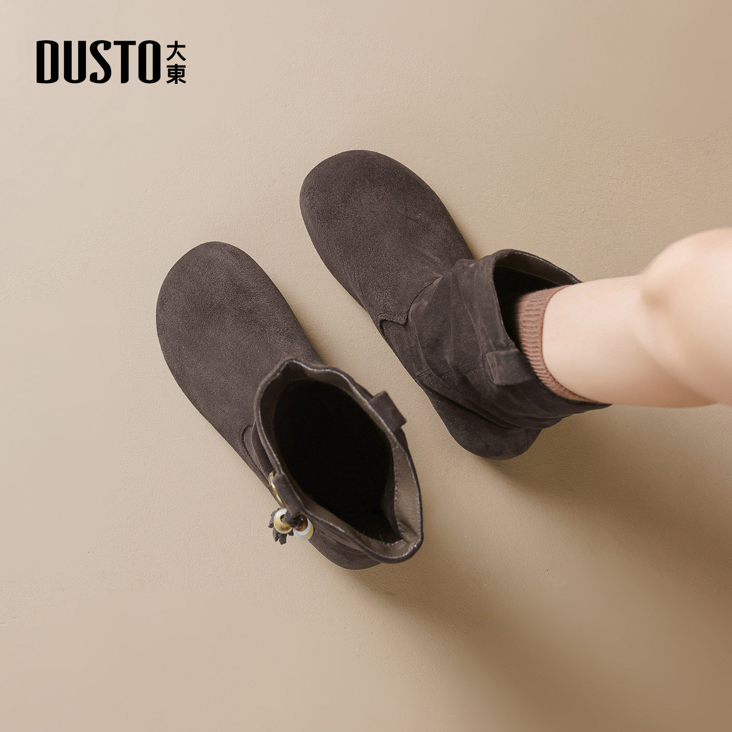 大东复古勃肯短靴女2025新款秋冬棕色美拉德靴子西部牛仔靴堆堆靴