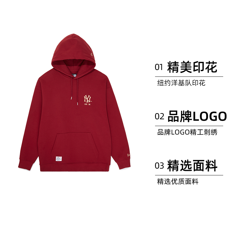 【自营】New Era纽亦华白敬亭同款2025秋季MLB美式连帽印花卫衣潮