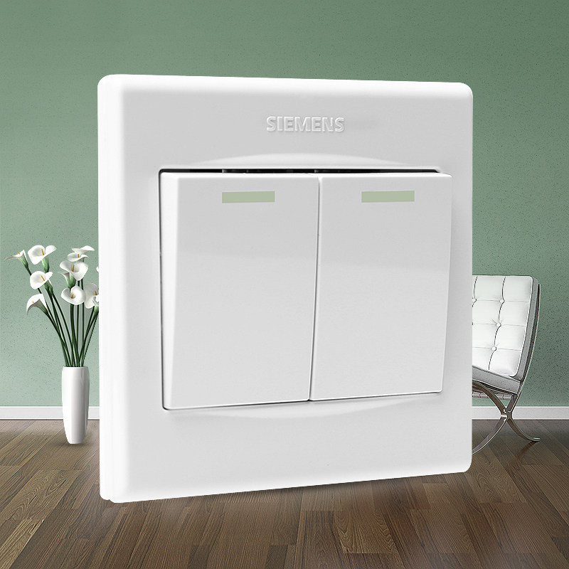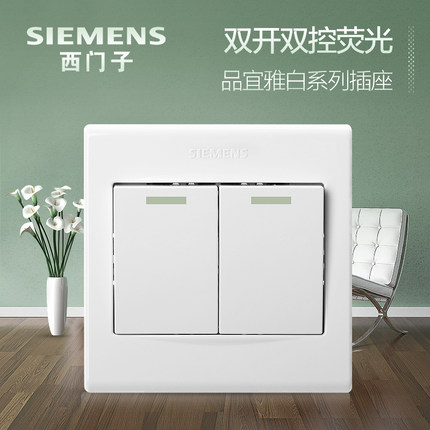 西门子双开双控开关插座 品宜雅白开关面板 86型二开双联荧光开关