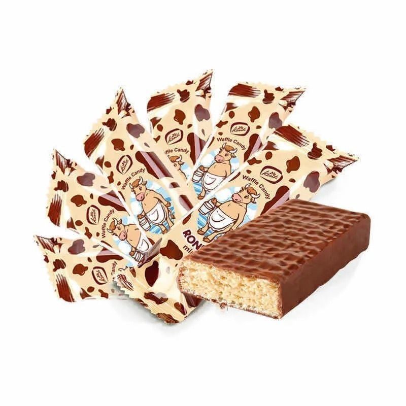 包邮康吉大奶牛俄罗斯进口大牛威化巧克力饼干围裙牛零食品