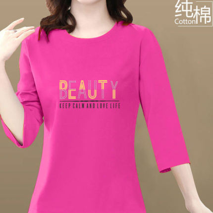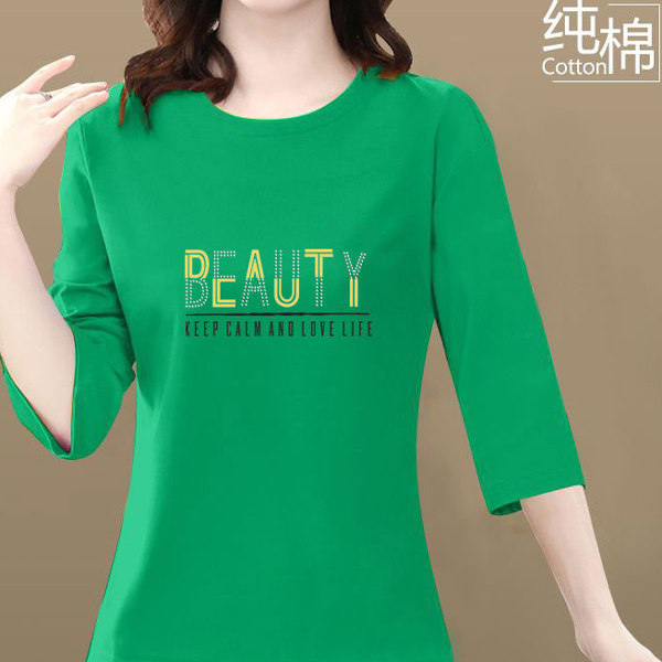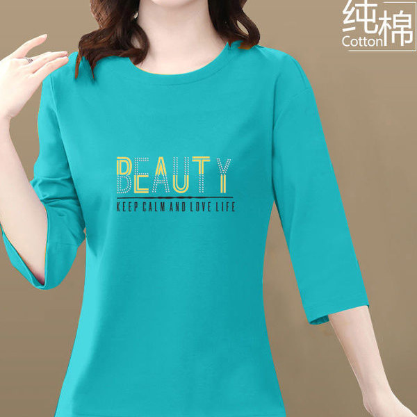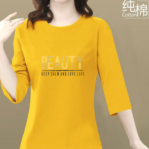 纯棉七分袖t恤女2025新款韩版宽松显瘦上衣时尚百搭体恤衫潮妈妈