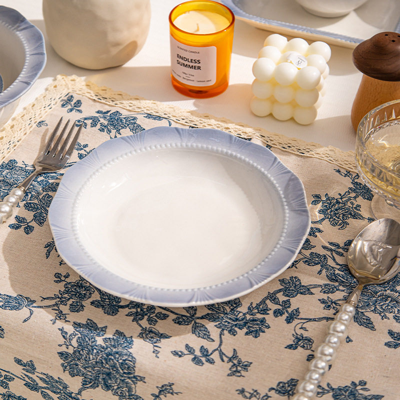 法式烟蓝碗碟套装家用米饭碗乔迁送礼轻奢陶瓷餐具汤碗圆盘涧石蓝