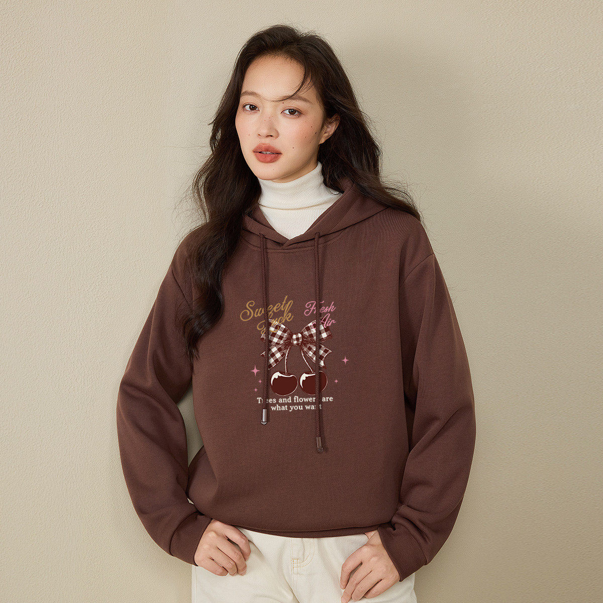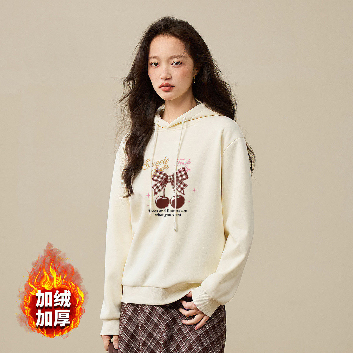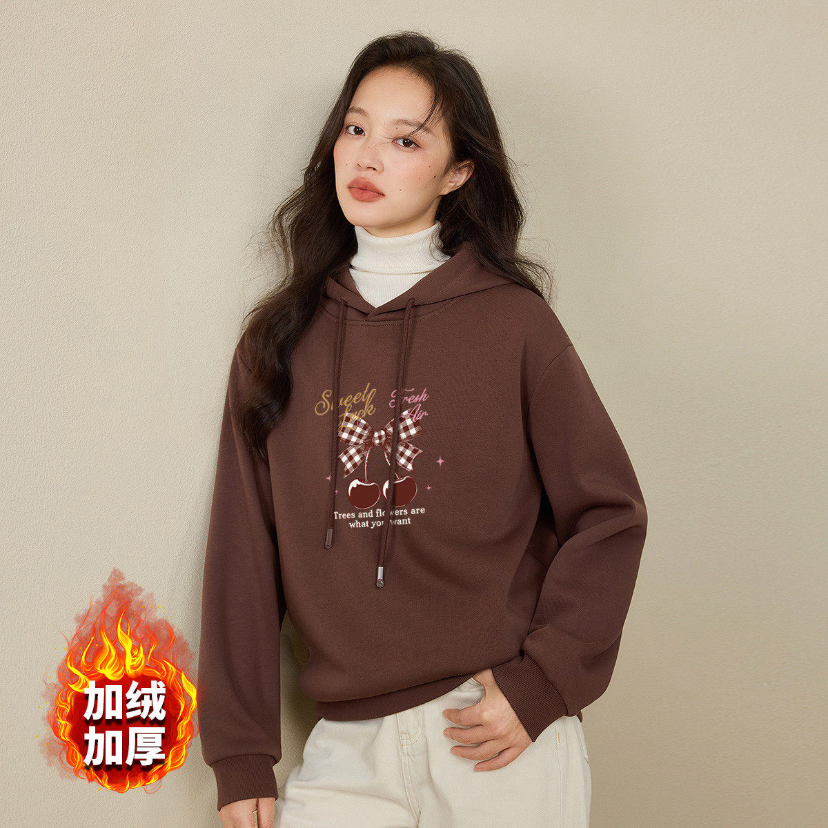 茵曼2025冬季新款加绒加厚保暖长袖卫衣外套女连帽宽松显瘦百搭