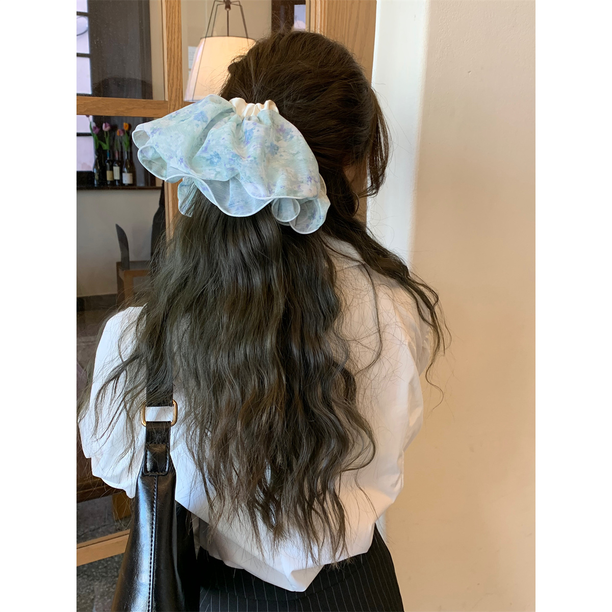 韩国简约复古碎花大肠发圈2025新款森系荷叶边小众发饰扎发头绳女