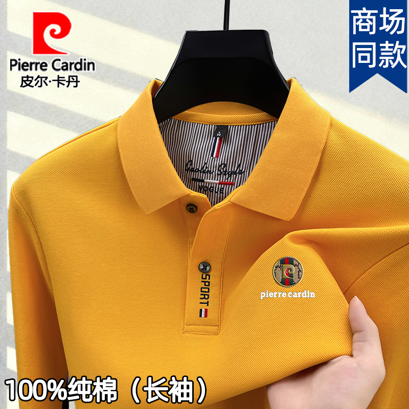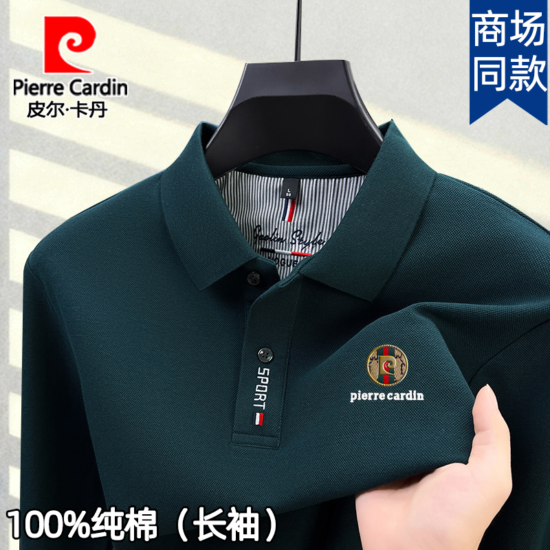 皮尔卡丹秋季男100%纯棉长袖t恤2025新款翻领高端Polo衫全棉上衣