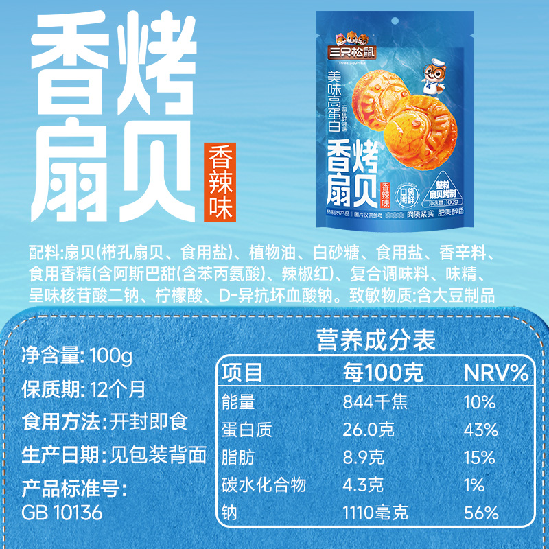 三只松鼠_香烤扇贝解馋海鲜熟食零食品休闲追剧办公室即食小吃by