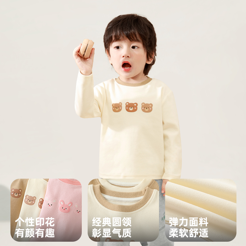 咔咔熊猫冬装新款婴儿衣服休闲圆领长袖T恤春秋男女宝上衣打底衫