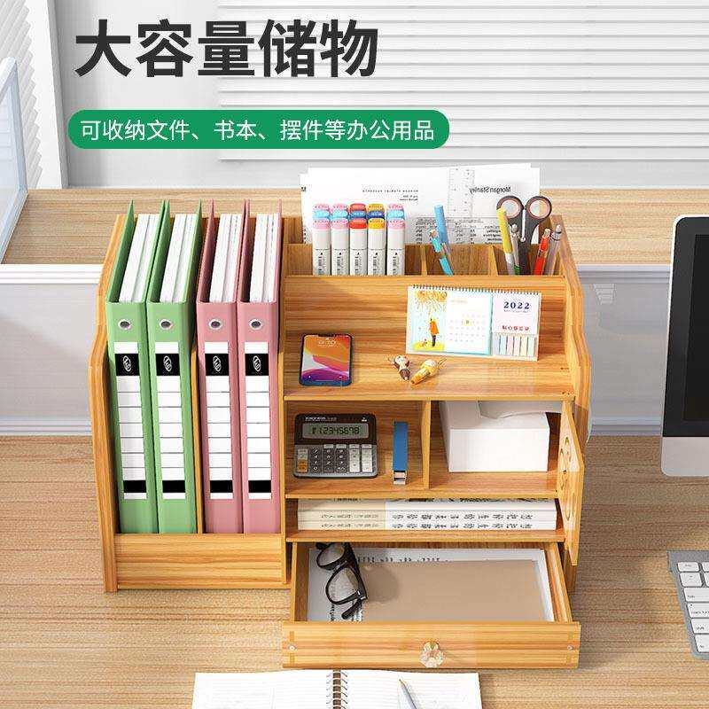 办公桌面收纳盒用品大号多层抽屉文件夹文具室木质储物书桌置物架
