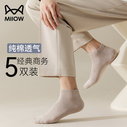 猫人男士袜子男纯棉短筒袜夏季男款透气网眼短袜休闲纯色百搭船袜