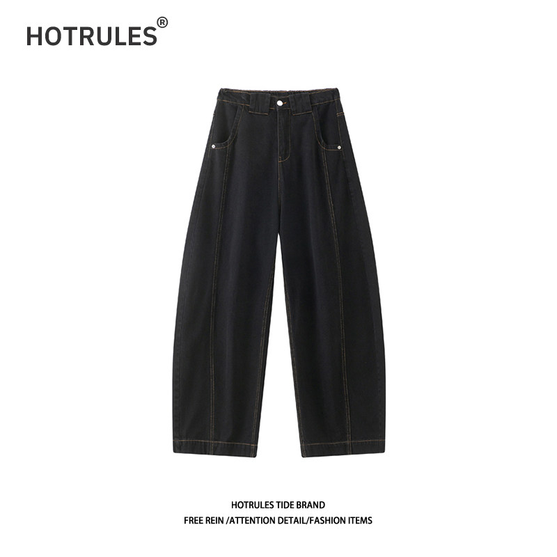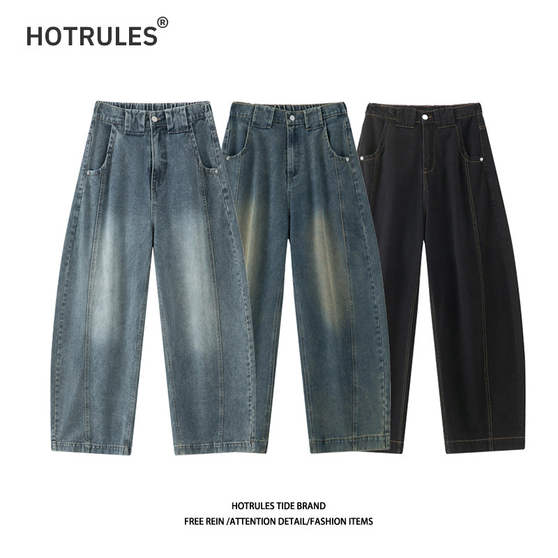 HOTRULES解构弯刀牛仔裤男女复古水洗显瘦做旧潮流百搭休闲长裤