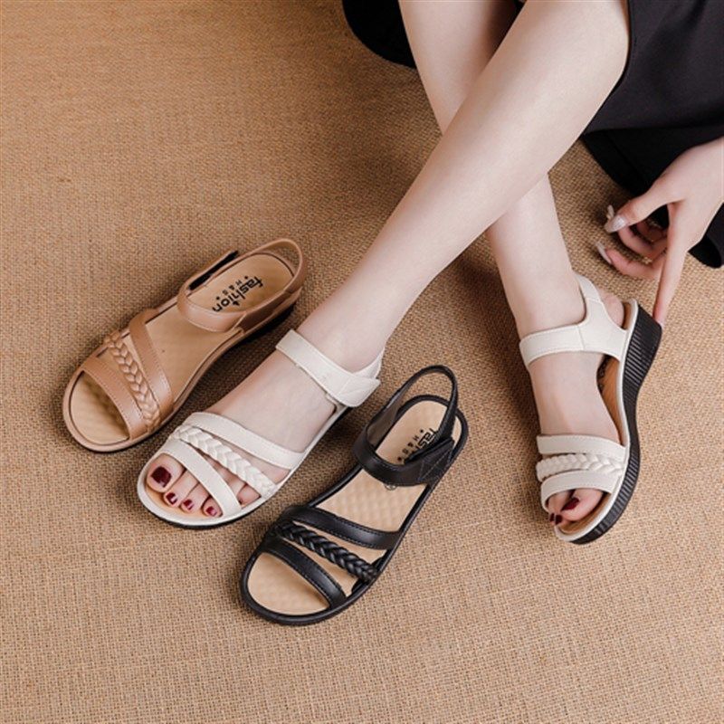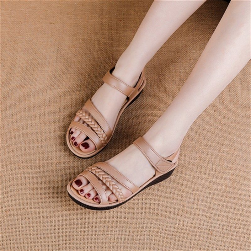 妈妈凉鞋女中老年夏季新款低跟防滑软底老人舒适坡跟女士凉拖外穿