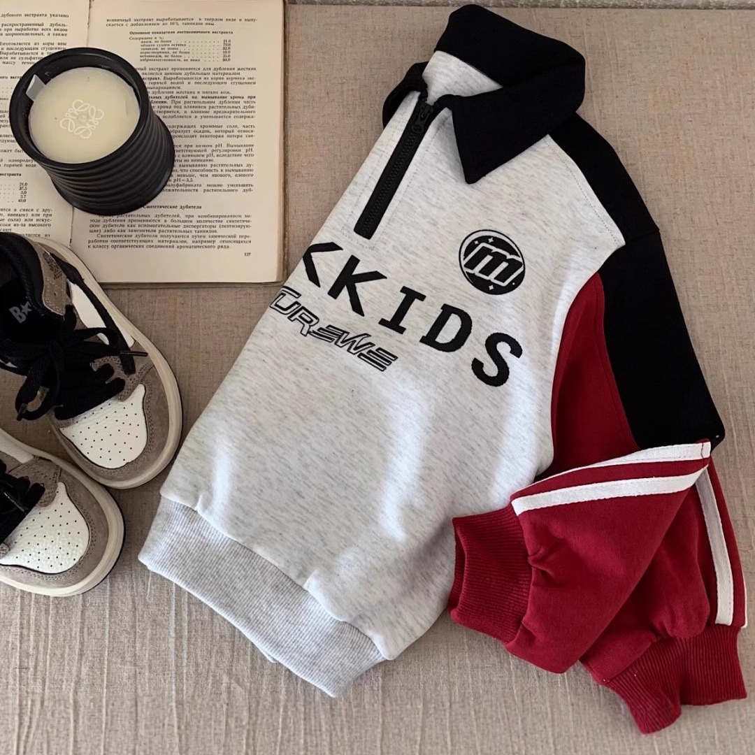 儿童字母卫衣男2025秋季新款小童拼色上衣潮宝宝半拉链外套女帅气