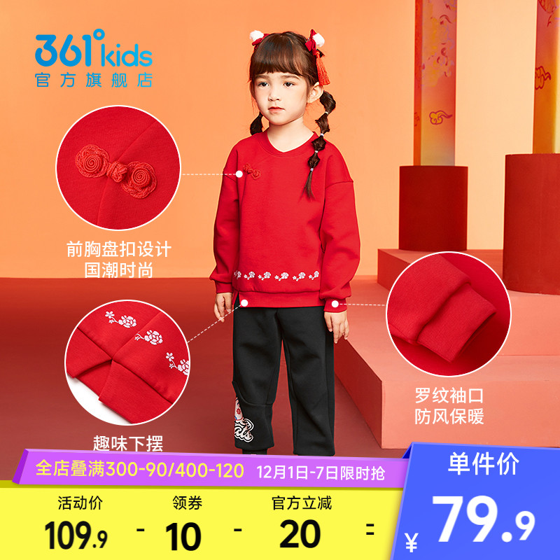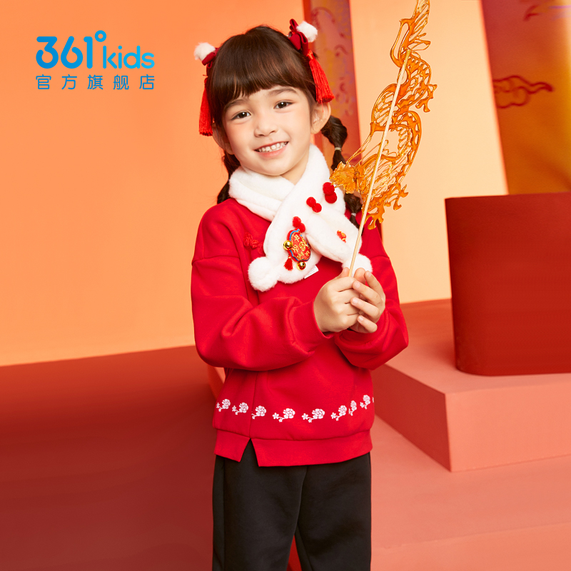 灵蛇焕新|361童装儿童针织卫衣女童新年拜年春秋红色小童宝宝上衣