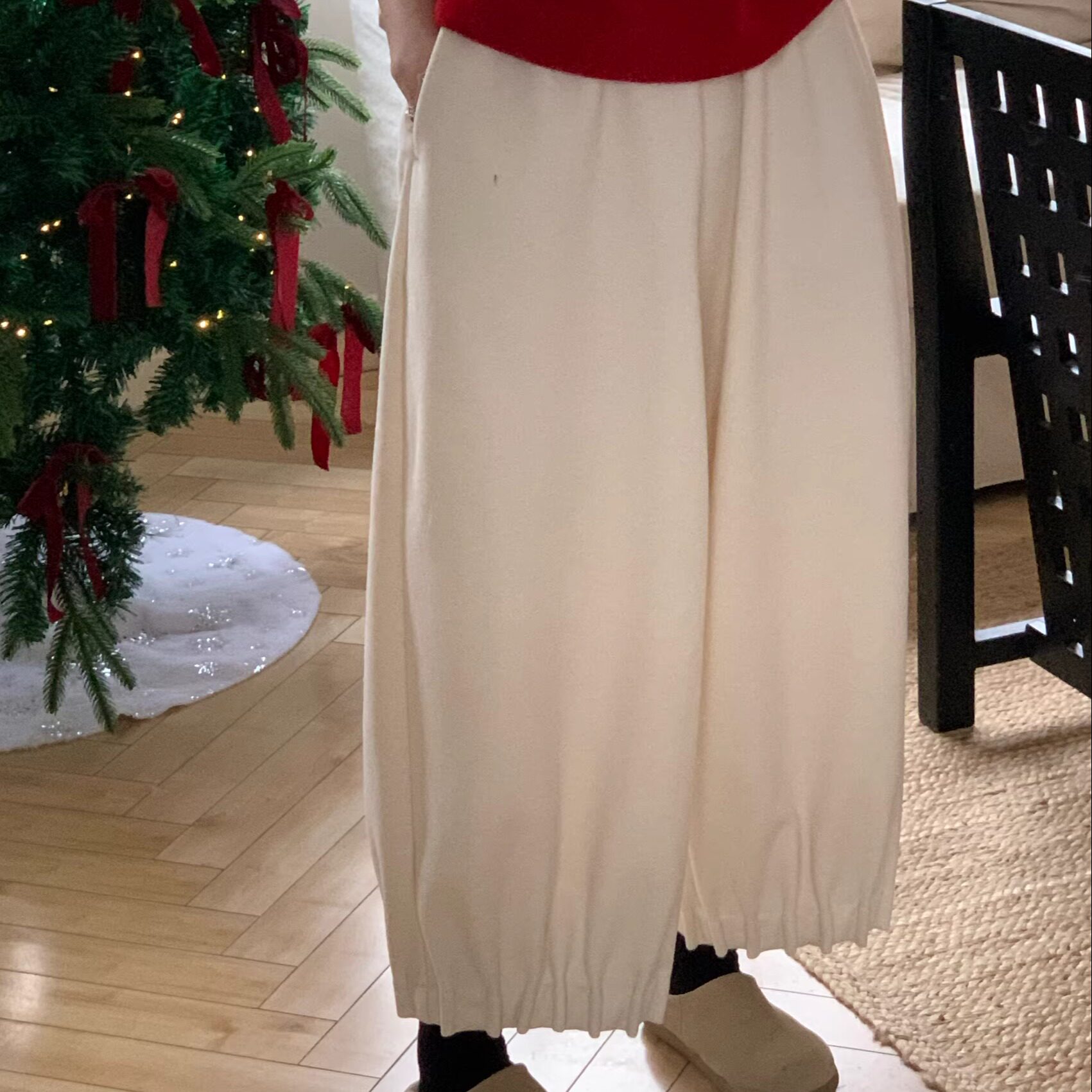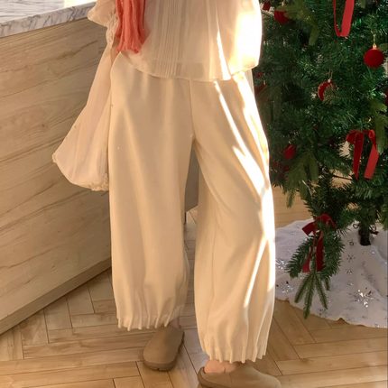 岛知道秋冬舒适日系少女加绒花苞褶皱羊毛9分裤白灰两色