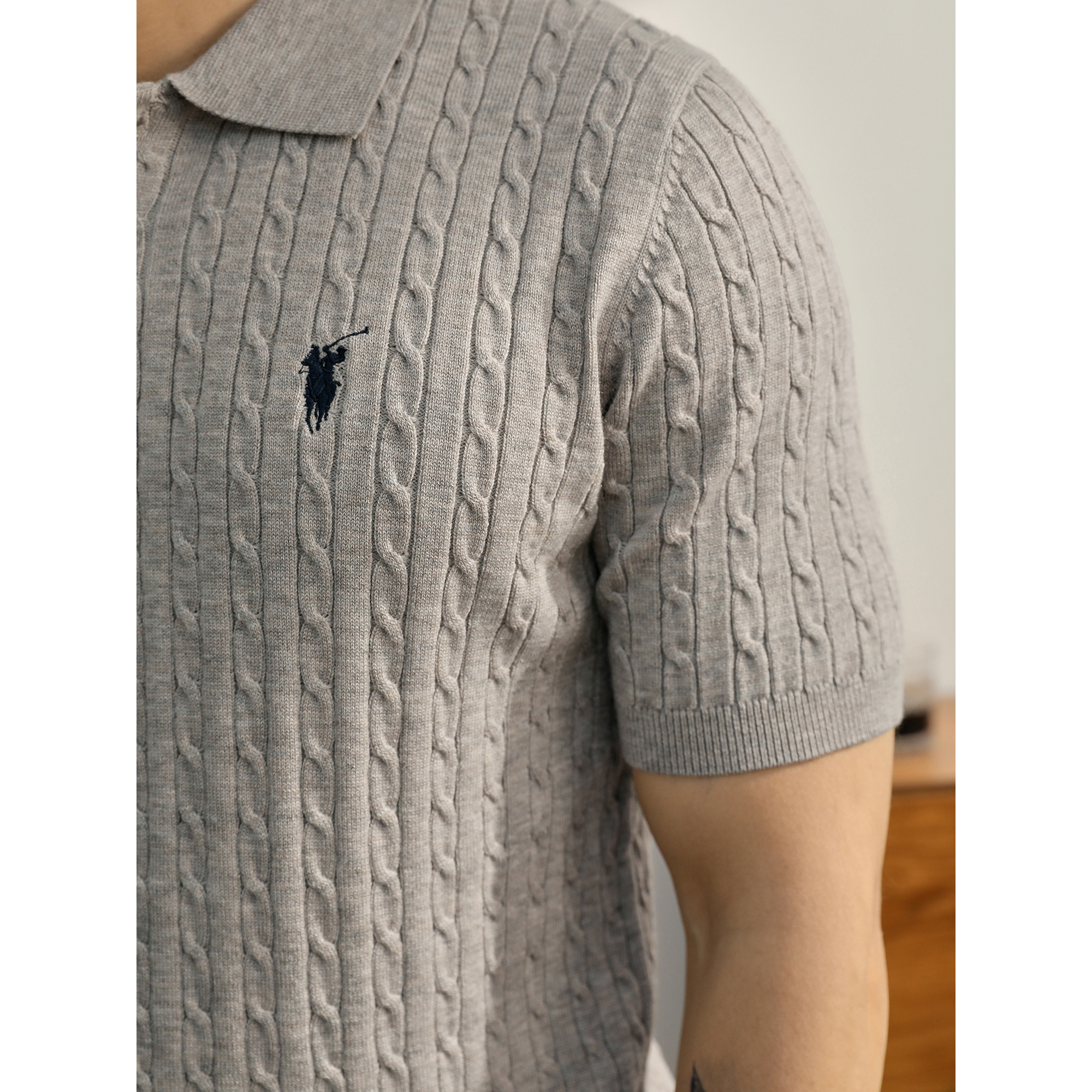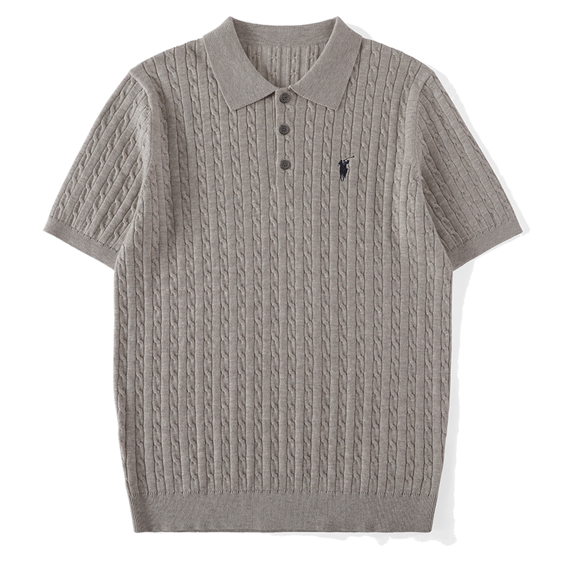 LUUD 轻奢感编织纹理骑士刺绣翻领polo衫男含羊毛针织半袖保罗衫