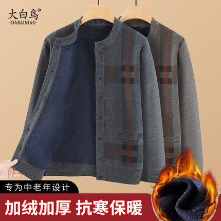 冬季爸爸加绒加厚开衫外套中老年人男士保暖上衣对襟针织毛衣爷爷