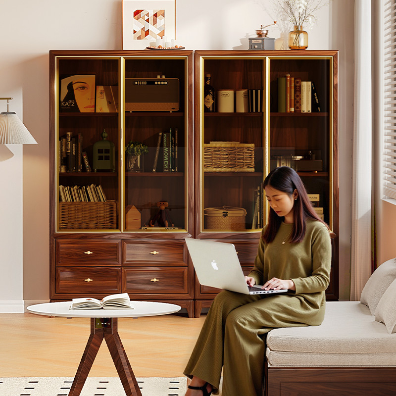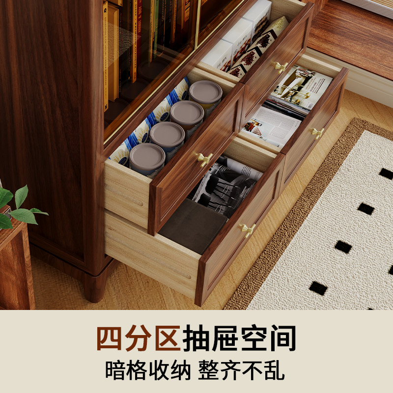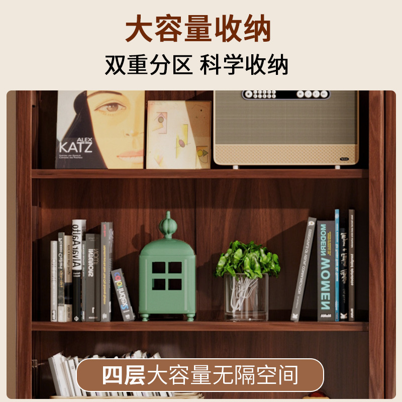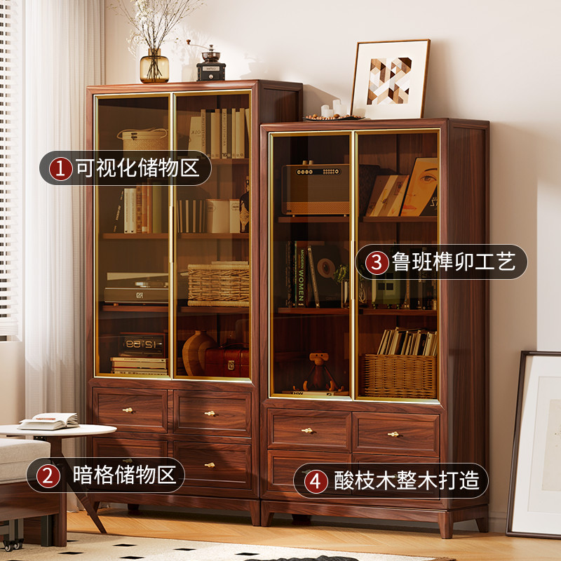 纯实木书柜适宜家用收纳储物柜子茶具柜客厅卧室通用玻璃门柜官方