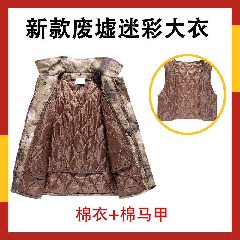 24新款冬季户外耐脏防寒东北抗寒军大衣保安棉大衣迷彩大衣