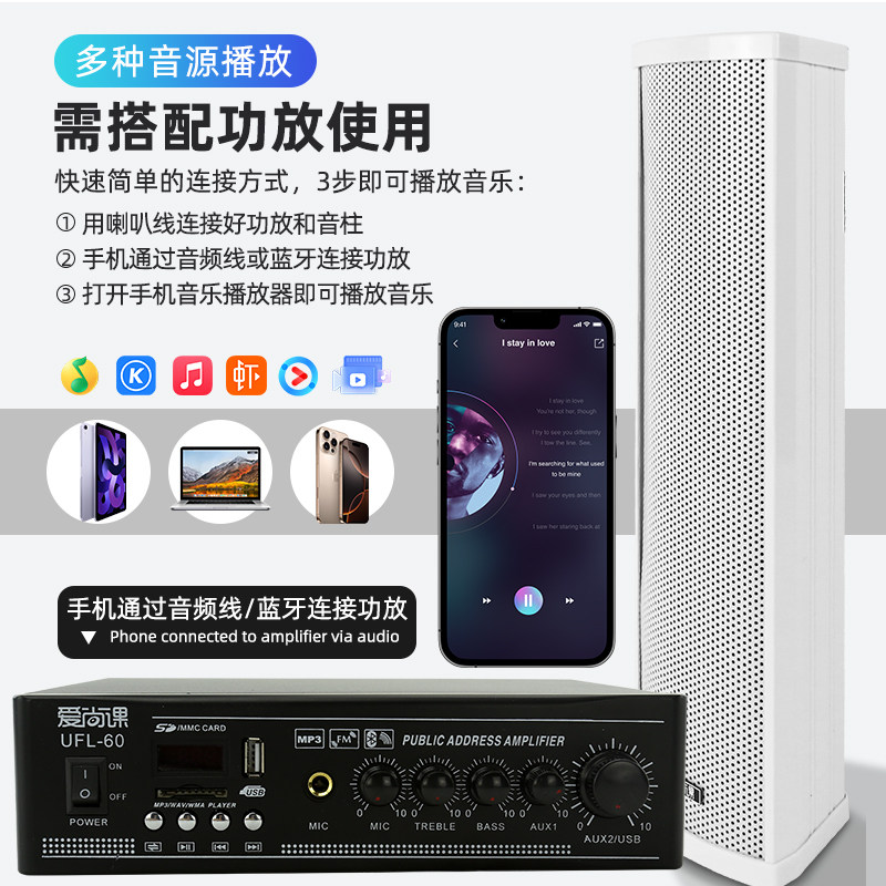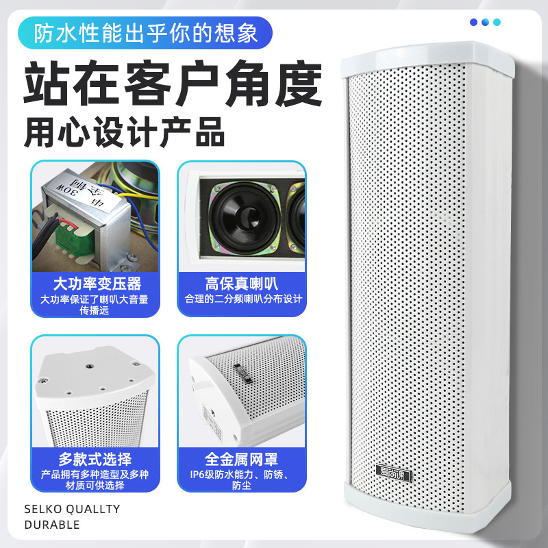 爱尚课 E20系列音柱30W40室外防水音柱户外音箱音响广播壁挂喇叭