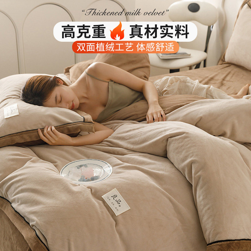 秋冬款加厚牛奶绒床上四件套珊瑚法兰绒面床单床品加绒被套三件套