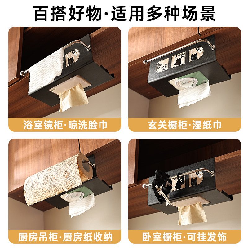中古风纸巾架厨房高级轻奢收纳盒悬挂式抽纸多功能置物架日常家用